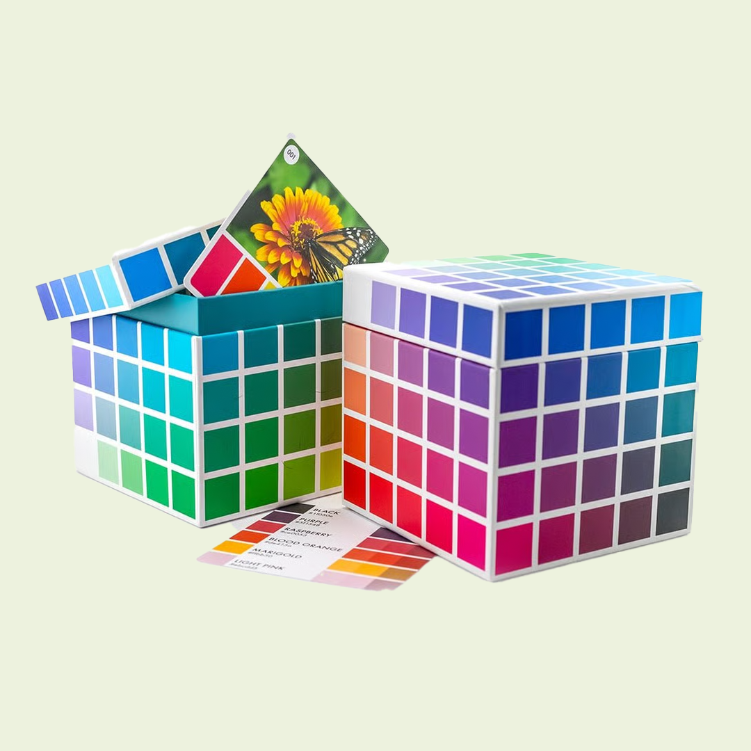 The Color Cubes by Sarah Renae Clark are boxes filled with cards, each containing a color palette. They’re super useful for coming up with a color palette for a party or project. The colors on the cards are named and the hex code is listed, so you can be sure to carry the perfect colors throughout any printed or digital products.
