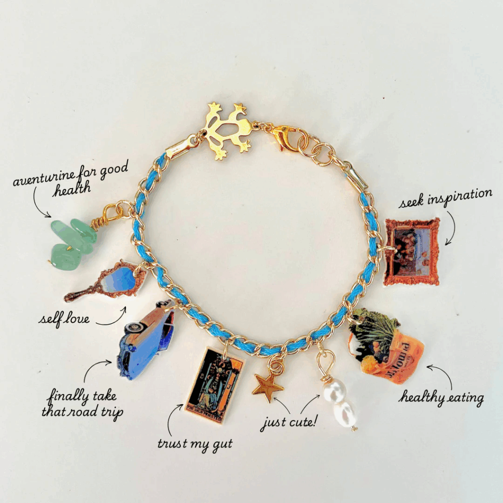 You customize the colors and the metal, then you choose from a plethora of meaningful charms based on your vision for yourself. They have charms for love, career, free time, abundance, spirituality, health, and more.